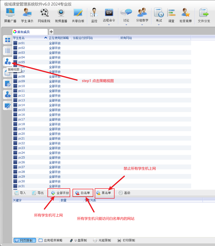 3、学生机上网控制方法如下:
