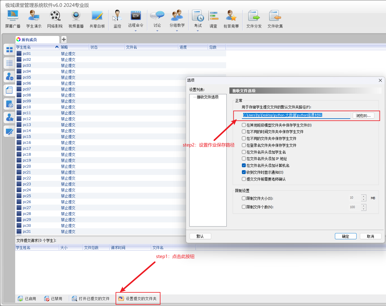 专业计算机(2号实训楼206、207)极域软件使用手册